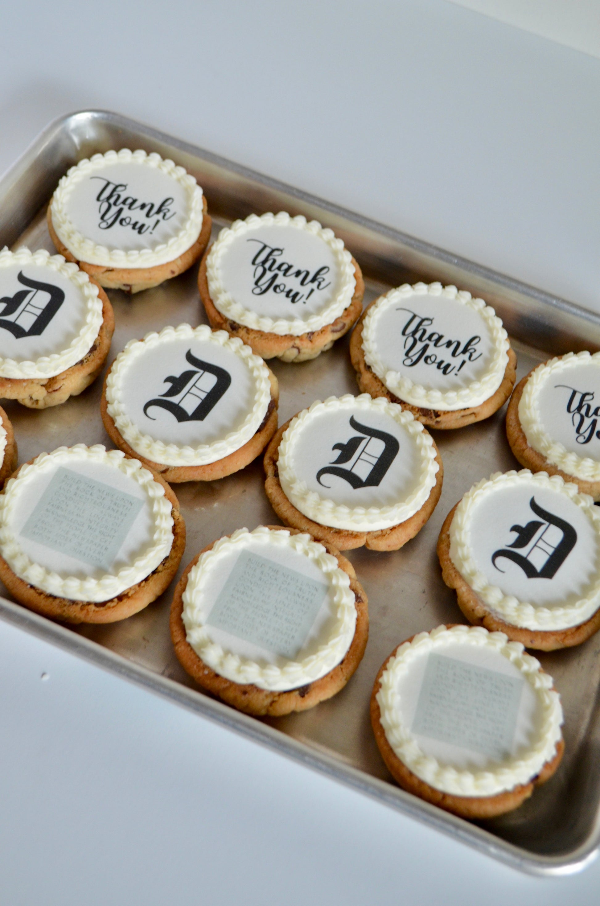 These custom chocolate chip cookies are topped with buttercream and an edible image. You may have up to three edible images for orders of one dozen or up to six edible images for orders of two dozen or more.